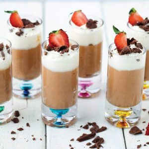 - Pipe the cream chantilly on top of each milk chocolate mousse.