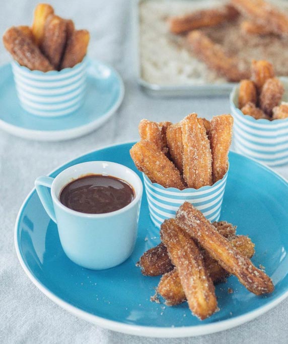 These Homemade Churros with Warm Chocolate Sauce are best served warm and are perfect for an mid afternoon snack.