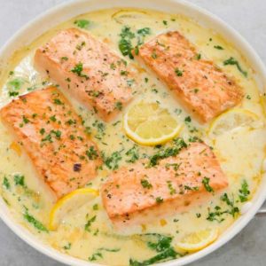 Very versatile and easy to make, this Pan-Fried Salmon With Creamy Garlic Sauce can be eaten with pasta, rice or vegetables. The secret to this dish is the incredibly flavorful sauce!