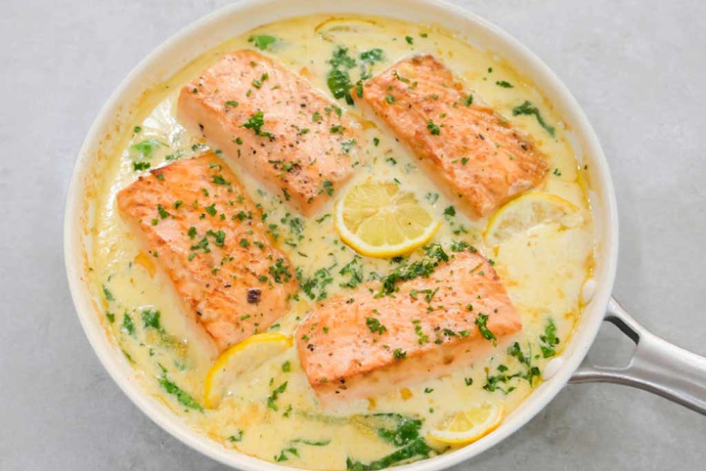 Pan-Fried Salmon With Creamy Garlic Sauce