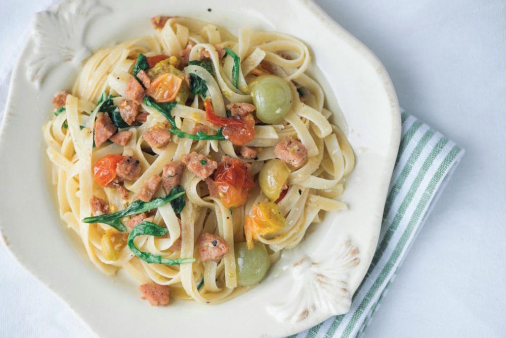 Sausage is an incredibly versatile food. You can enjoy it as a snack or as an stand out ingredient to different kinds for dishes. This Sausage, Tomato and Arugula Linguine is a mouthwatering pasta treat. It’s so simple to make, yet packed with lots of flavor.
