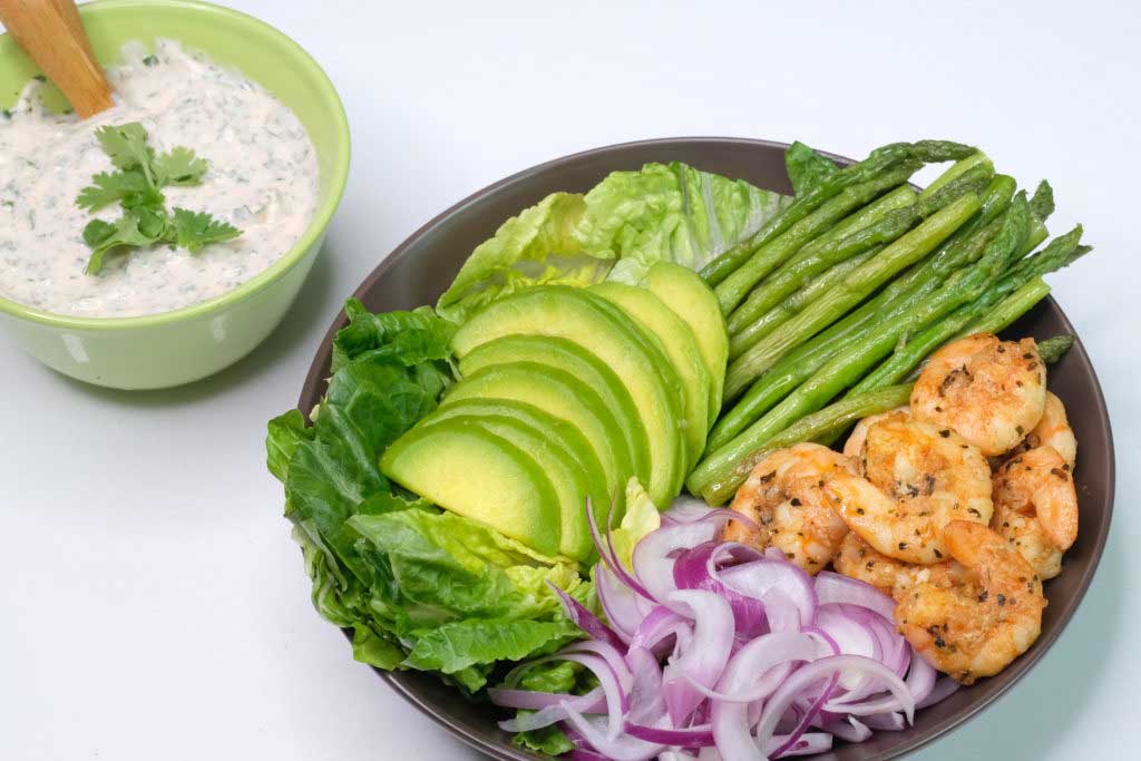 Shrimp, Avocado and Asparagus Salad with Cilantro-Yogurt Dressing